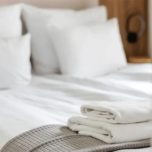 Our premium hotel textiles are crafted to combine luxury, durability, and easy care. From crisp bed linens and plush towels to elegant table linens and decorative fabrics, each item is made with high-quality materials to enhance guest comfort and elevate the hospitality experience. Designed for frequent laundering without losing softness or style, our textiles help hotels create a lasting impression of quality and elegance