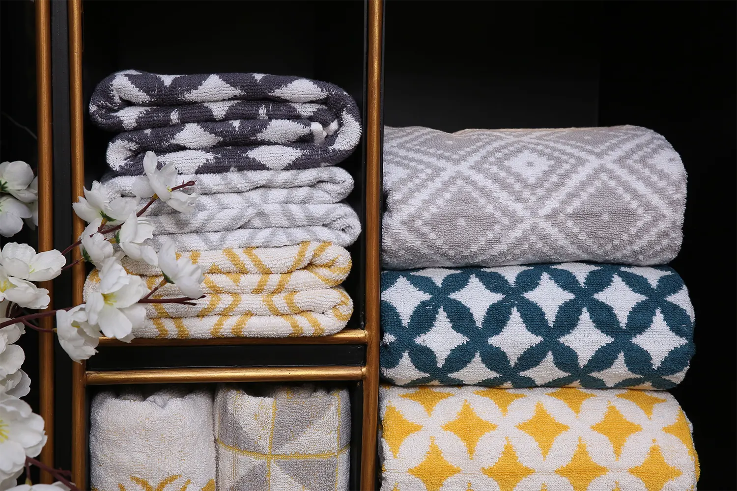 Towels Indulge in plush absorbency and spa-like luxury with our premium towels, crafted from soft, high-quality fibers that gently caress your skin. Designed to dry quickly while maintaining their rich texture, they bring everyday comfort and elegance to your bathing experience.